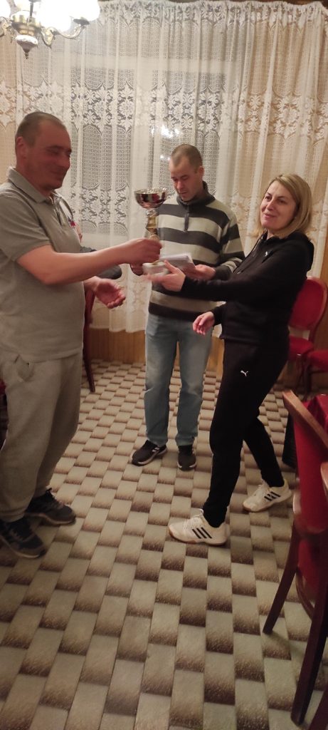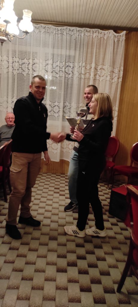 A közös vacsora alkalmàval Hegybeli József ismertette a mèrkőzèsek vègeredmènyèt, àtadtàk a díjakat. Első lett Szabó Elek, màsodik Novàk Lórànt, harmadik Lennert Istvàn. D