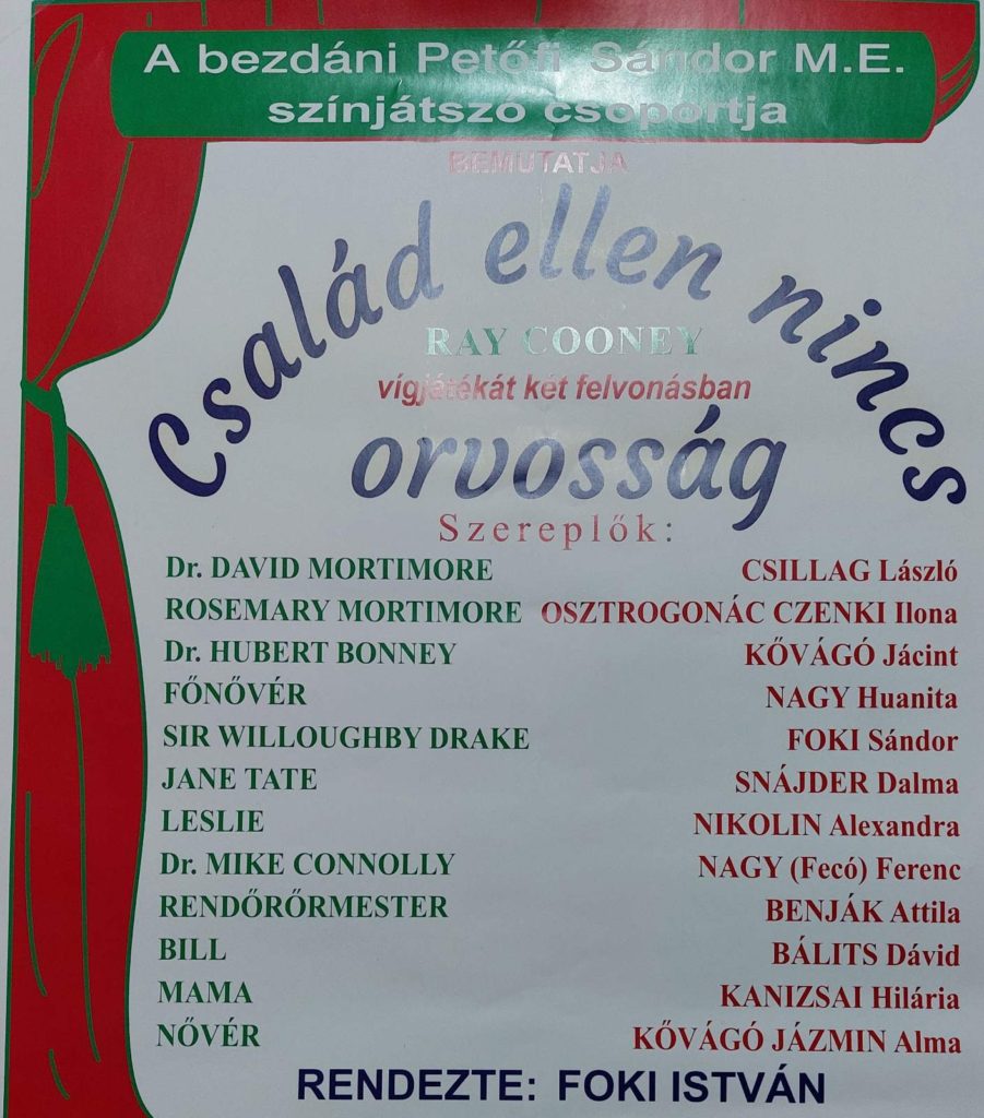 November 27- én, vasárnap 18 órától a kupuszinai Petőfi Sándor Művelődési Egyesületben vendégszerepel a bezdáni színjátszó csoport: