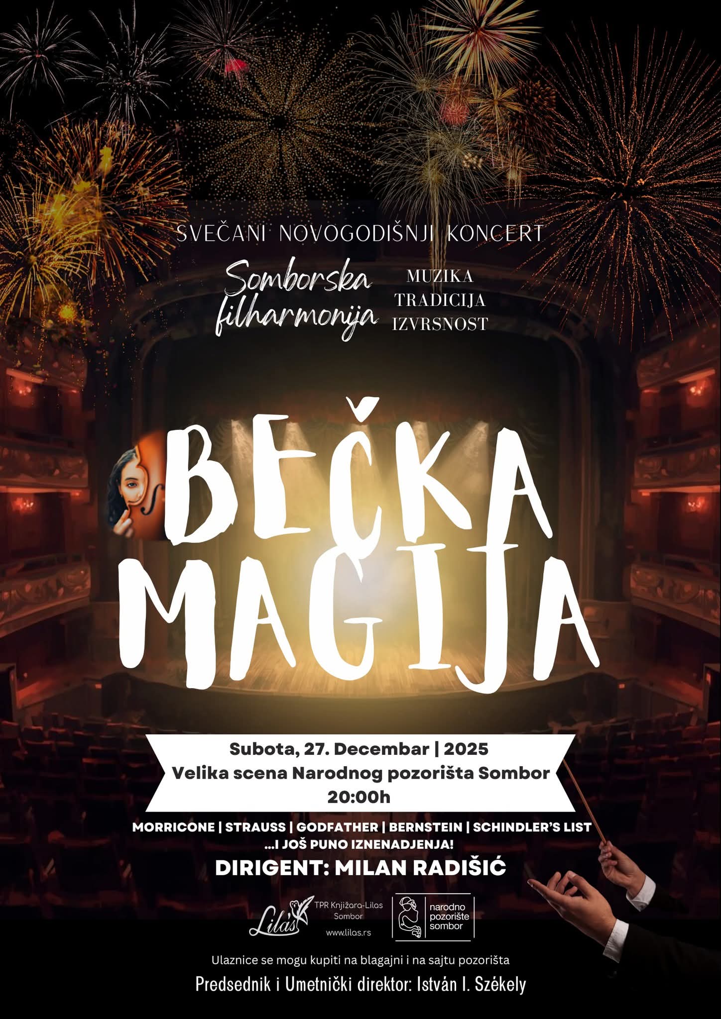 December 27- én 20 órától Bécsi varázs címmel ünnepélyes újévi koncertre kerül sor a Zombori Filharmónia előadásában a Zombori Népszínházban
